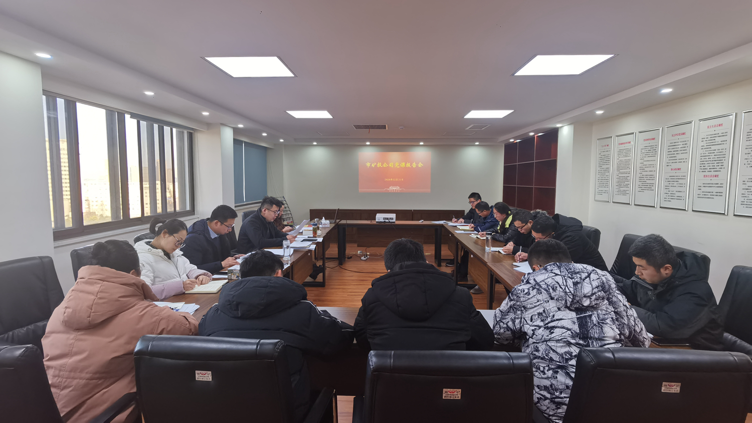 12月31日下午,市礦投公司黨支部召開專題黨課報告會。公司黨委書記鄭冬冬以《做擔(dān)當(dāng)有為的新時代共產(chǎn)黨員》為題,為支部黨員和入黨積極分子上了一堂生動的黨課。