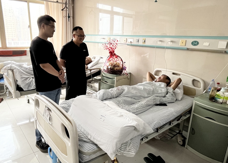 生產(chǎn)運營部經(jīng)理儲彪代表公司轉(zhuǎn)達(dá)了對患病職工的關(guān)心,并詳細(xì)了解治療恢復(fù)情況,囑咐他要保持良好心態(tài),積極配合醫(yī)院的治療,爭取早日康復(fù),回歸工作崗位。